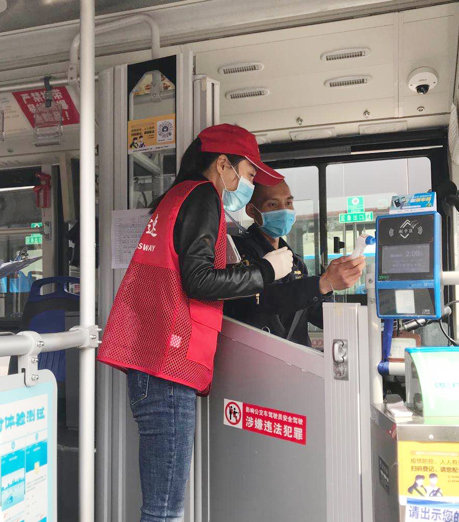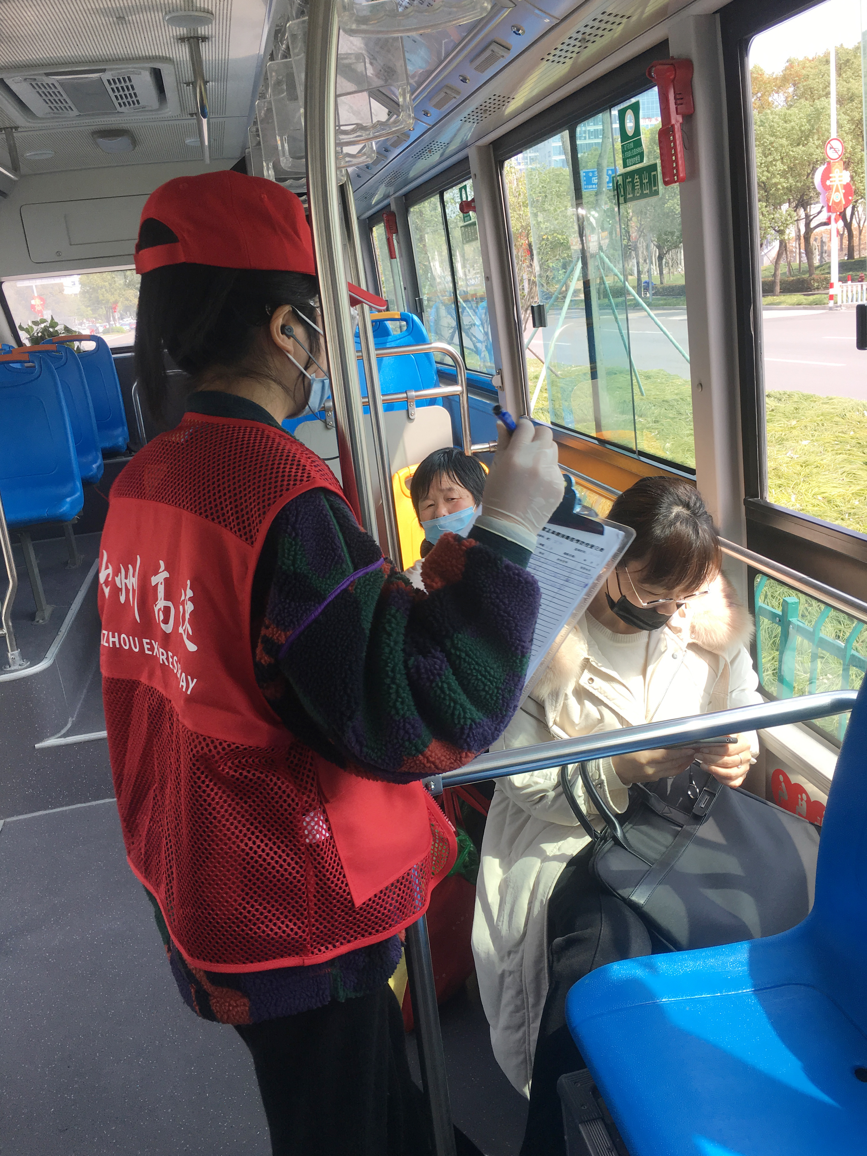 圖為志愿者跟車防疫服務(wù) “我所在的一班車來回一趟是1個多小時,疫情期出行人員不多,大家上車前都會認真配合檢查。”毛譯聆說道,她一次連續(xù)跟車要3個多小時。 疫情在前,國企擔當,臺州高速人會持續(xù)共戰(zhàn)疫情,哪里有需要,挺身在哪里,以行動詮釋高速責任,展現(xiàn)高速風采。